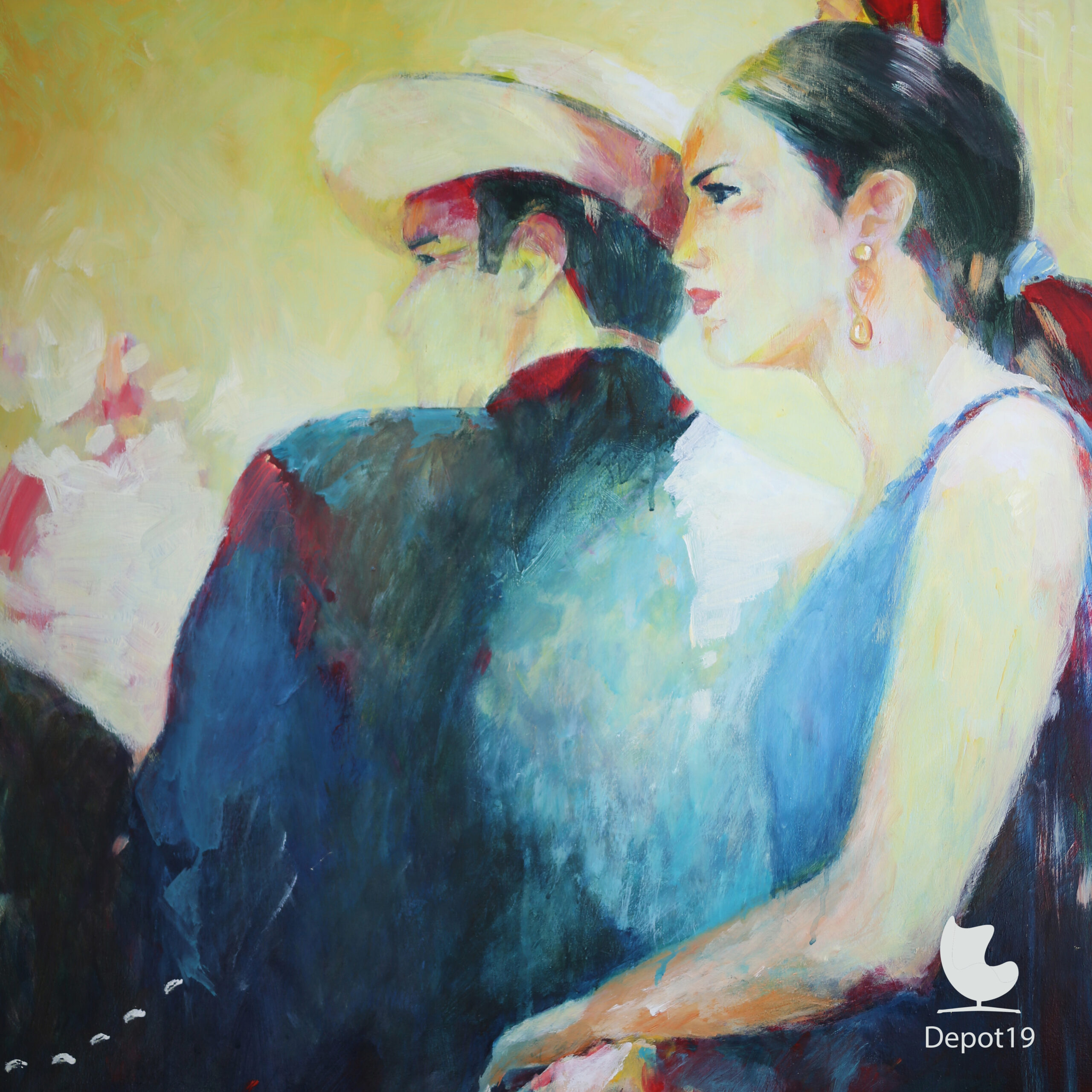 In dit grote doek van 120 × 80 cm beeldt zij een Spaans danspaar af, gevangen in een moment van concentratie en passie.