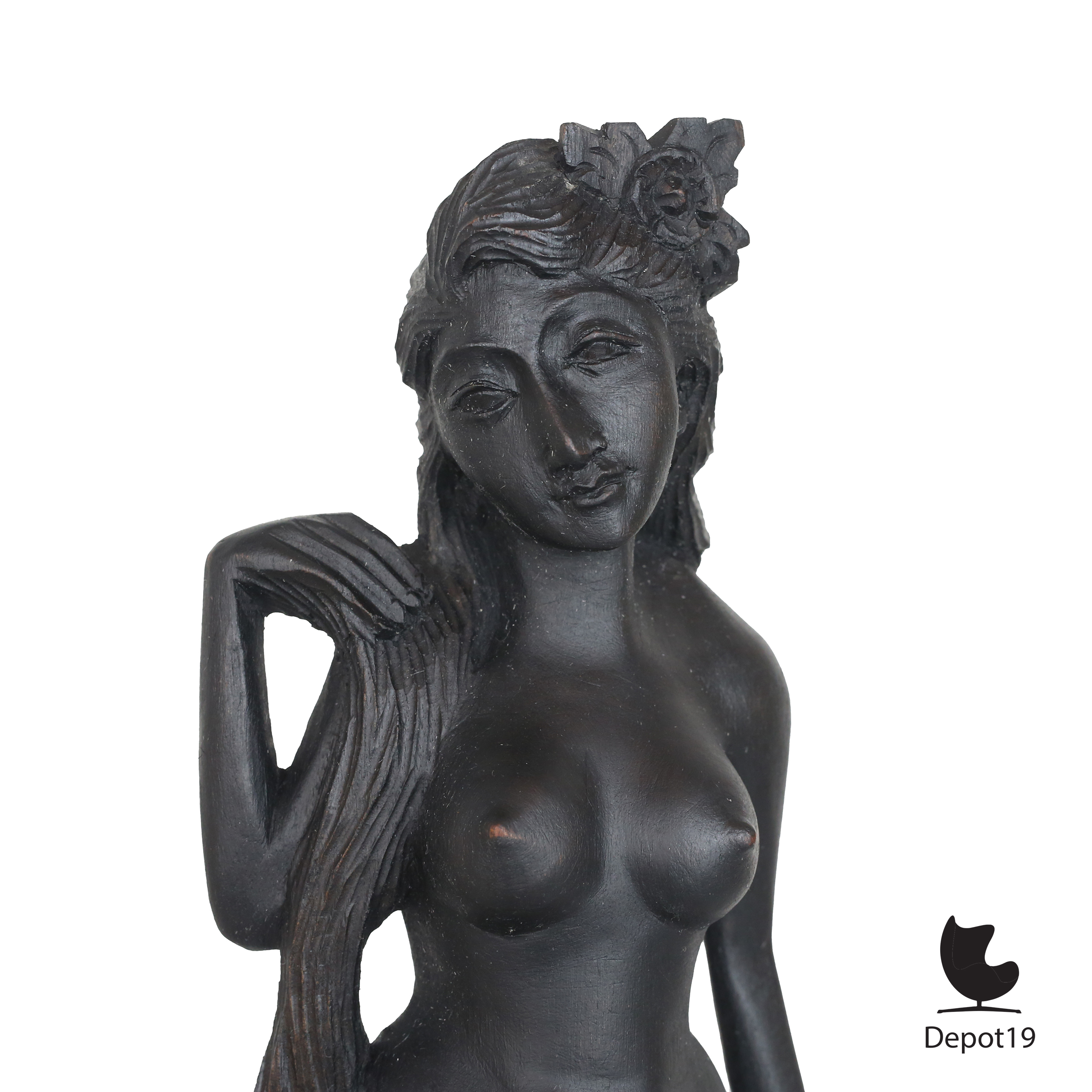 Gauguin stijl houten vrouwenbeeld zwart gepatineerd Zuid-Azië ca. 1960s