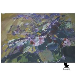 De Jong begon als impressionist, maar evolueerde richting expressionisme. Zijn schilderijen balanceren tussen herkenning en abstractie. In deze gouache vertaalt hij de vorm van bloemen tot kleur en ritme: geen exacte weergave, maar de essentie van groei, licht en leven. De levendige penseelvoering en de transparante lagen verf geven het werk een dynamische diepte.