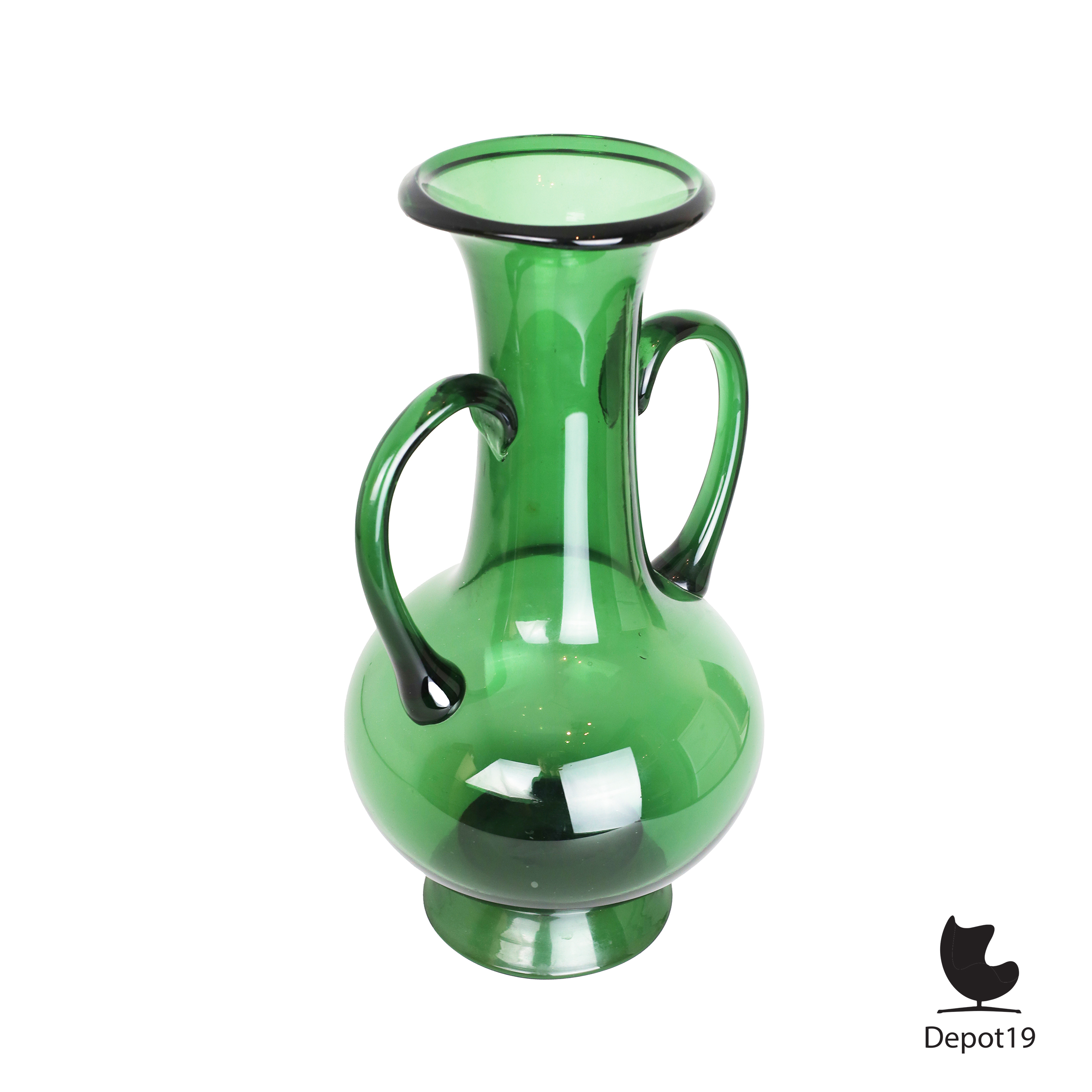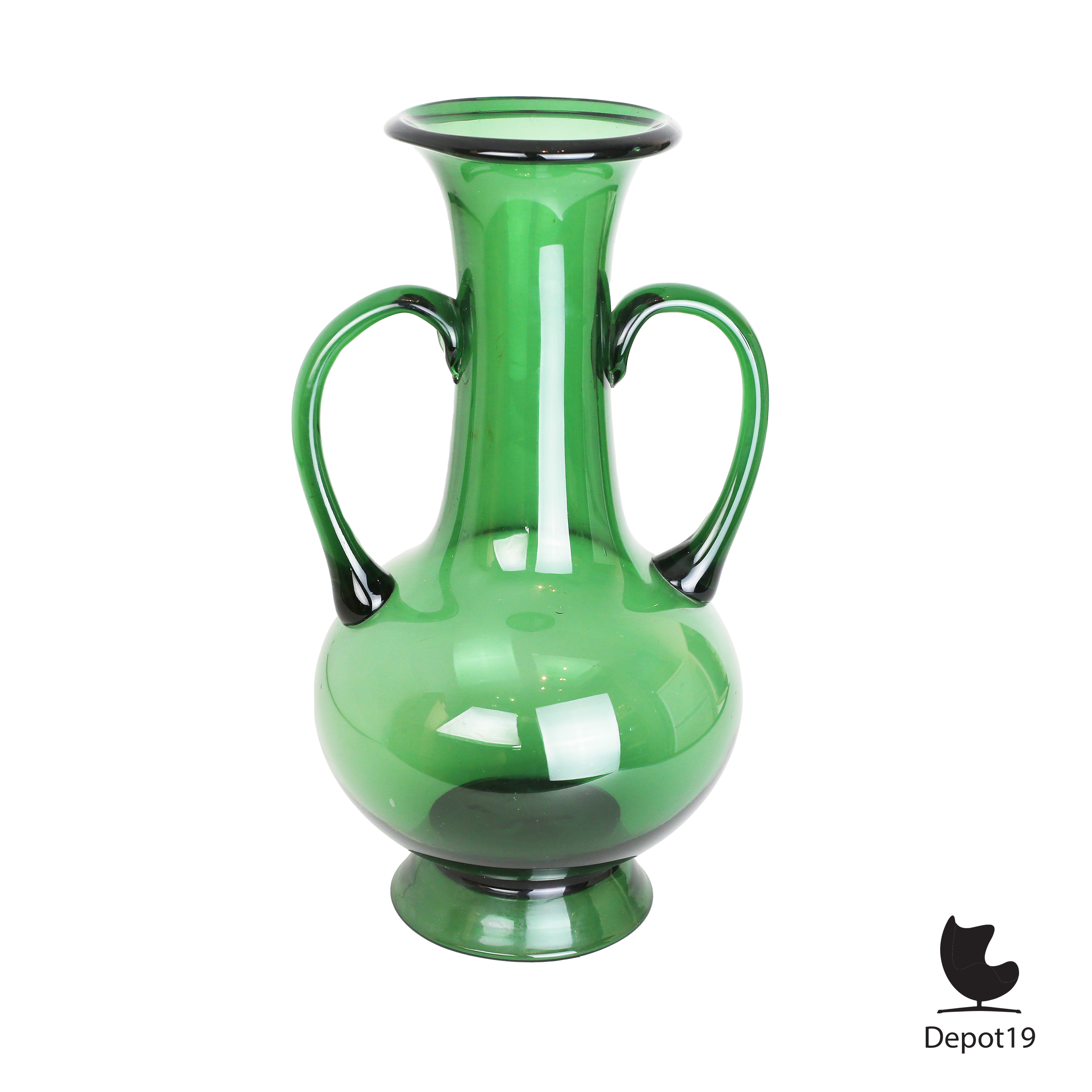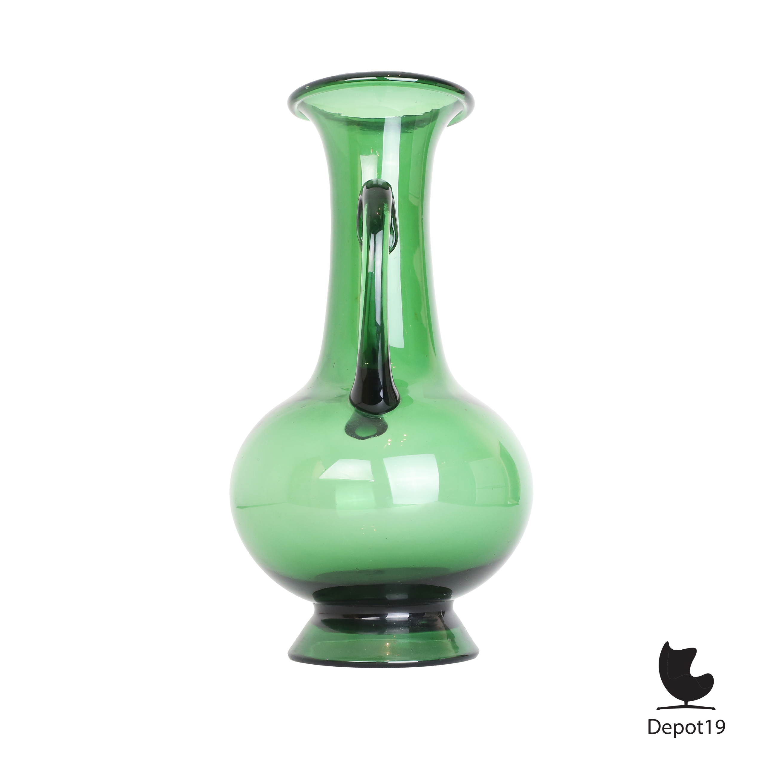 Deze vaas toont de typische Empoli-kleur, een diepe smaragdgroene tint die ontstaat door het gebruik van koperoxide zodra het gesmolten glas wordt geblazen. Het resultaat is een intense kleur met een warme gloed die zich prachtig laat combineren met zowel licht als schaduw.