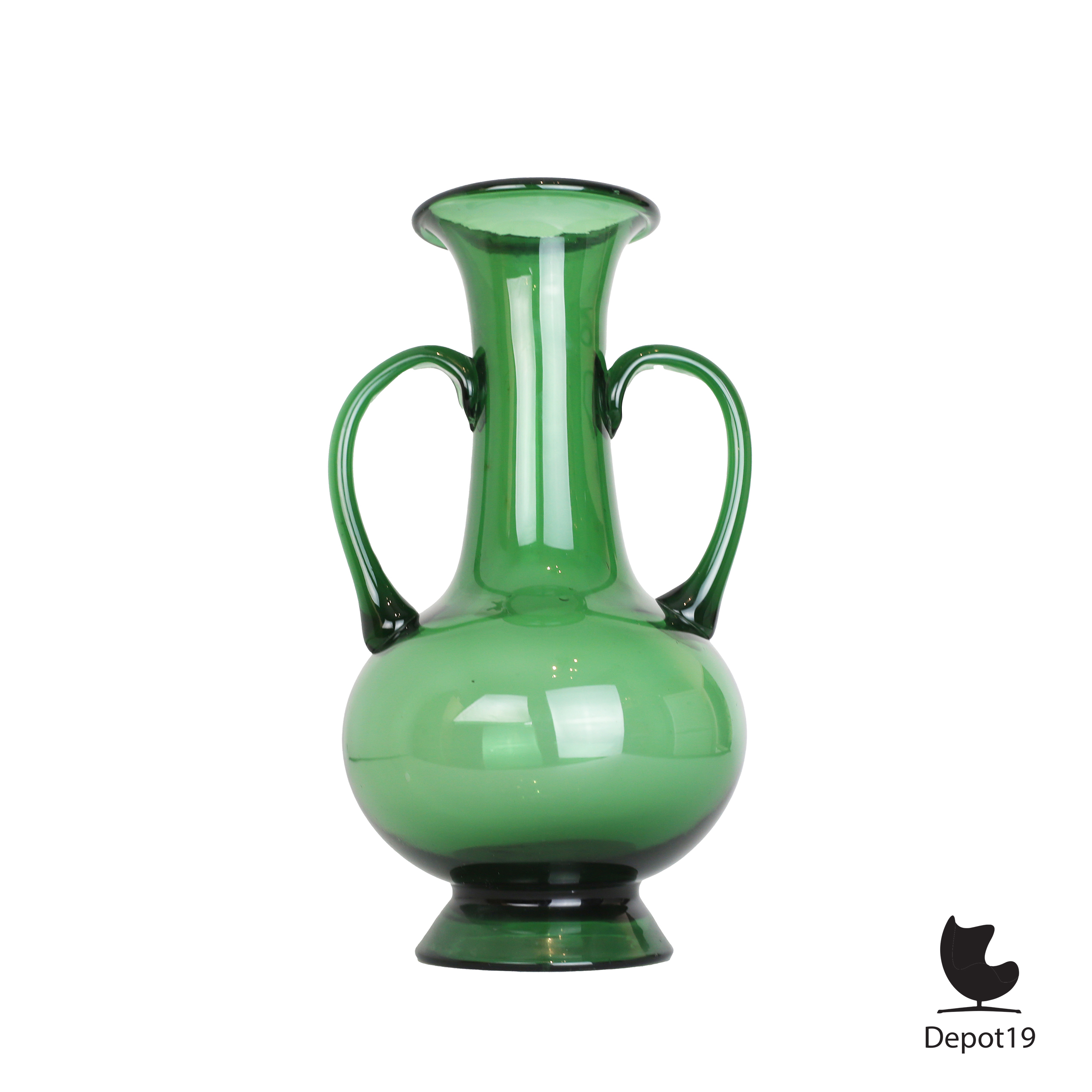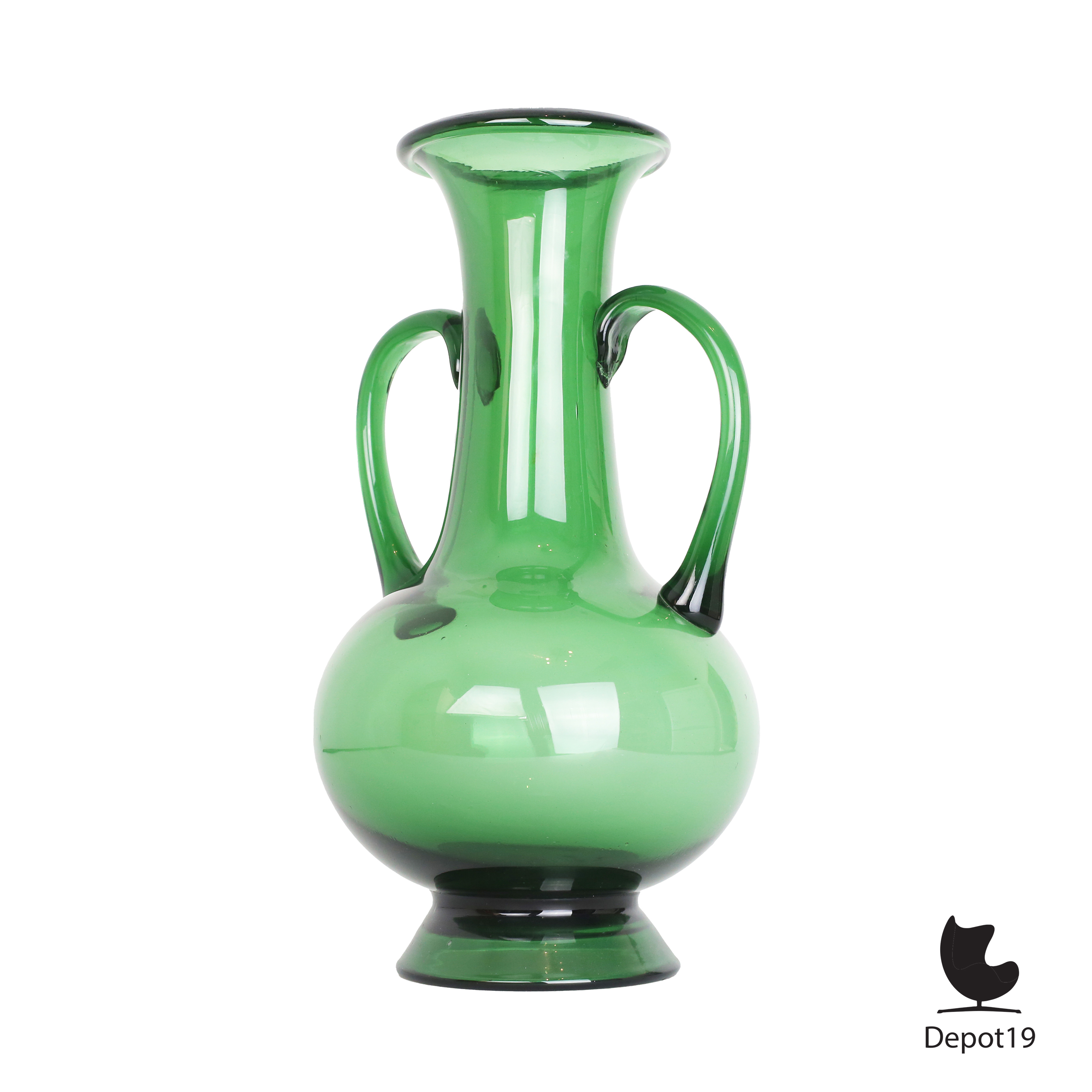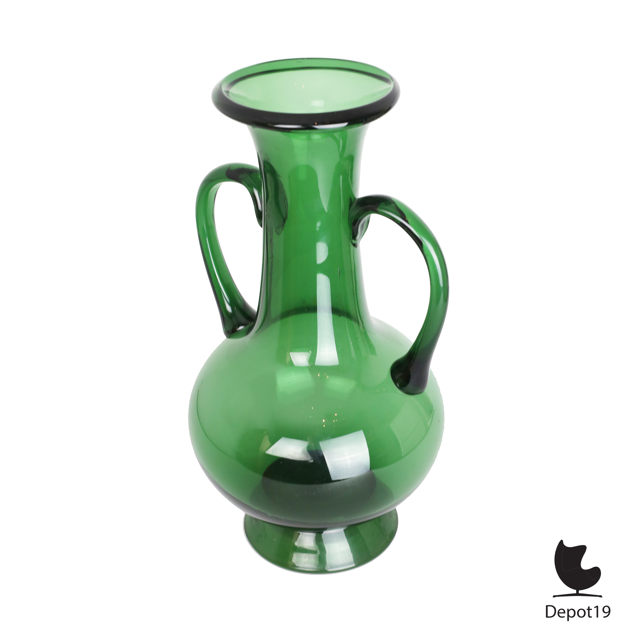 Deze vaas toont de typische Empoli-kleur, een diepe smaragdgroene tint die ontstaat door het gebruik van koperoxide zodra het gesmolten glas wordt geblazen. Het resultaat is een intense kleur met een warme gloed die zich prachtig laat combineren met zowel licht als schaduw.