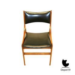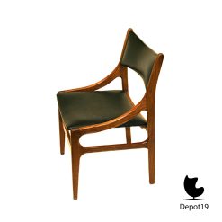 De H. Vestervig Eriksen stoel komt uit de jaren zestig en werd vermoedelijk ontworpen voor Brdr. Tromborg, een gevestigde Deense meubelfabrikant. Eriksen, bekend om zijn functionele en verfijnde benadering van houtbewerking, creëerde meubels die de essentie van Danish Modern in één oogopslag zichtbaar maken. Daarom voelen deze stoelen direct warm en evenwichtig aan.
