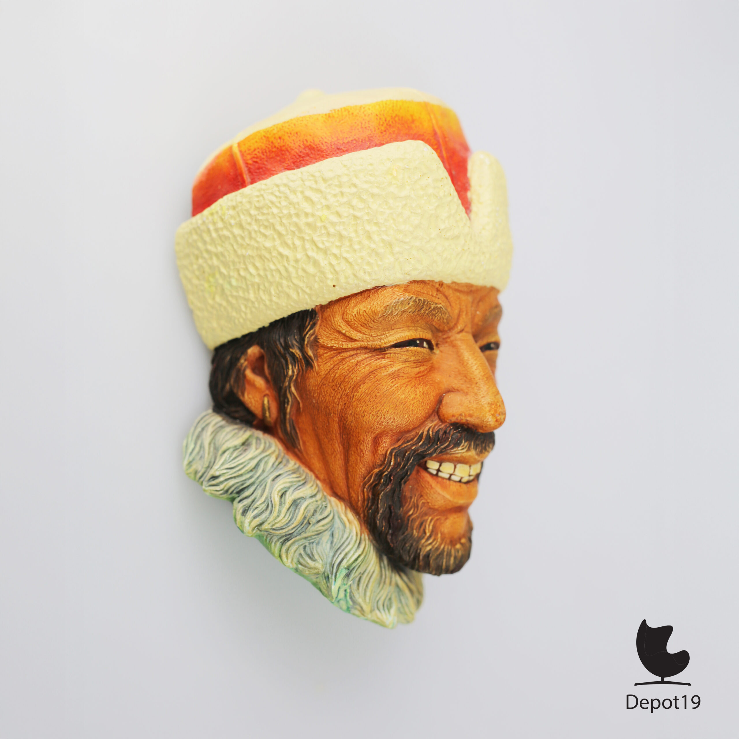 Bossons wandkop getiteld “Himalayan”, met de hand beschilderd.