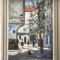Het schilderij “Montparnasse, Parijs” van Jan Kelderman is een schitterend voorbeeld van Nederlands impressionisme uit de jaren ’60. Met levendige kleuren en losse penseelstreken vangt Kelderman de sfeer van de beroemde Parijse kunstenaarswijk Montparnasse, destijds het hart van het culturele leven.