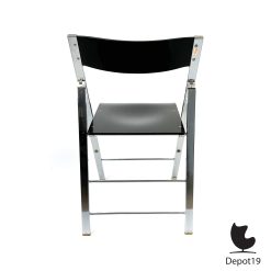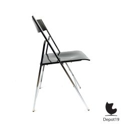 Deze Kare Design klapstoel uit de jaren tachtig combineert retro charme met praktische functionaliteit, daardoor voel je meteen de speelse ontwerpmentaliteit van die periode. Kare Design — opgericht in 1981 en bekend om zijn non-conformistische benadering — creëerde meubels die expressief, eigenzinnig en toegankelijk waren, waardoor deze stoelen nog steeds geliefd zijn bij vintage verzamelaars.