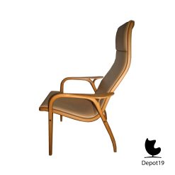 Deze uitvoering van de Lamino fauteuil is vervaardigd uit gebogen beukenfineer met een bekleding van beige leer, wat de stoel een warme en verfijnde uitstraling geeft. Het ergonomische ontwerp volgt de natuurlijke vormen van het menselijk lichaam, waardoor een uitzonderlijk zitcomfort ontstaat dat zelfs na uren behouden blijft.