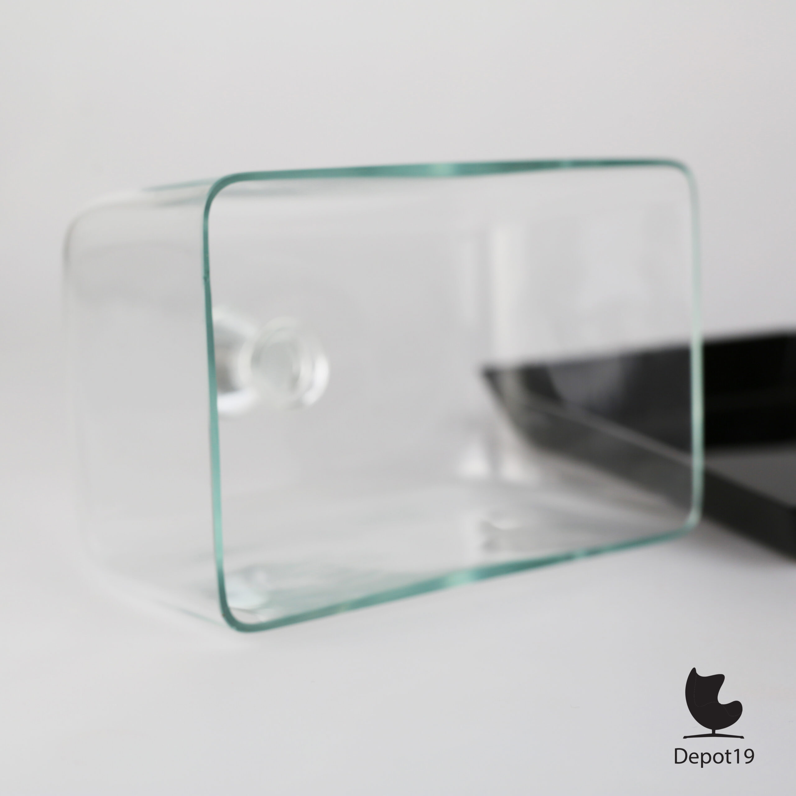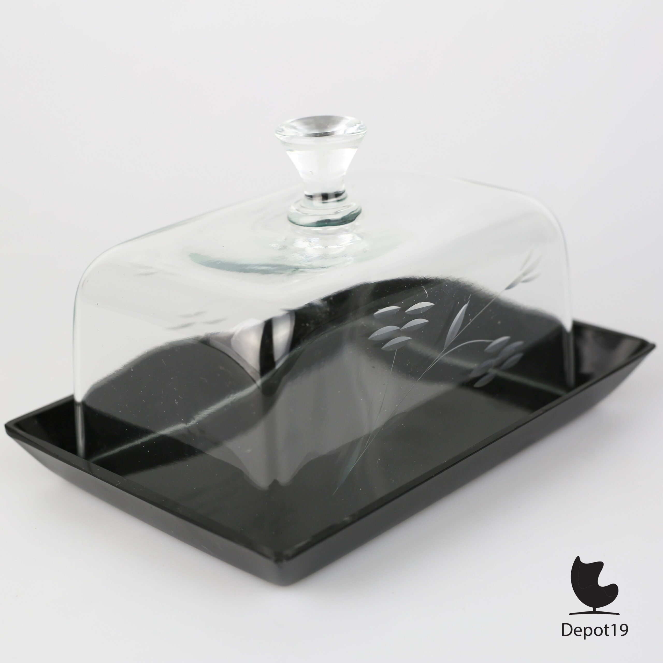 Leerdam style glazen kaasstolp met zwart voetstuk ca. 1900–1920