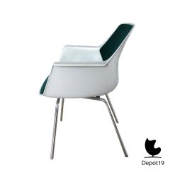 Leowald werkte in de jaren 60 nauw samen met Wilkhahn en liet zich inspireren door de internationale Mid-Century beweging, waarbij functionaliteit, eenvoud en experiment met nieuwe materialen centraal stonden. Deze stoel toont die gedachtegang in zijn pure vorm. De kuip heeft een helder silhouet dat doet denken aan de Eames-esthetiek, maar de uitvoering sluit duidelijk aan bij Leowalds Duitse precisie en zijn streven naar duurzame, toekomstgerichte meubelconstructies.