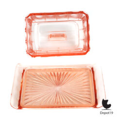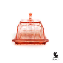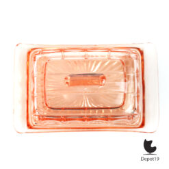 Deze licht rose kaasstolp uit de Leerdam glasfabriek is toegeschreven aan Andries Dirk Copier. Een prachtig voorbeeld van Art Deco glasdesign uit de jaren ’30, uitgevoerd in helder rose persglas met gestroomlijnde vormen en subtiele elegantie.