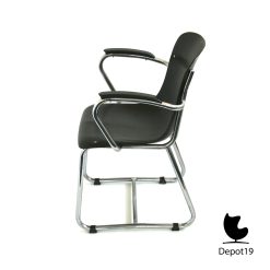 De stoel onderscheidt zich door zijn lichte, zwevende constructie en zijn sobere elegantie. Het ontwerp past perfect binnen de internationale modernistische stroming die het interbellum kenmerkte, maar behoudt een typisch Nederlandse nuchterheid en precisie. Deze stoel verkeert in goede vintage conditie en is een waardevol verzamelobject voor kenners van vooroorlogs design.