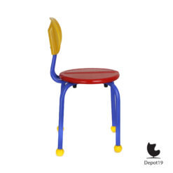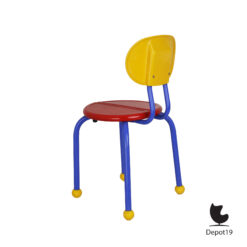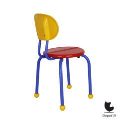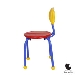 Het ontwerp ontstond in een periode waarin de Memphis-stroming, aangevoerd door Ettore Sottsass, de internationale designwereld opschudde met kleur, lef en humor. In deze stoel herken je diezelfde energie: vrolijk plastic, ronde vormen, en een constructie die tegelijk praktisch en ritmisch oogt. De stoel is stevig, licht van gewicht en ideaal voor kinderen, maar vandaag de dag heeft hij vooral aantrekkingskracht als design-statement en verzamelobject.
