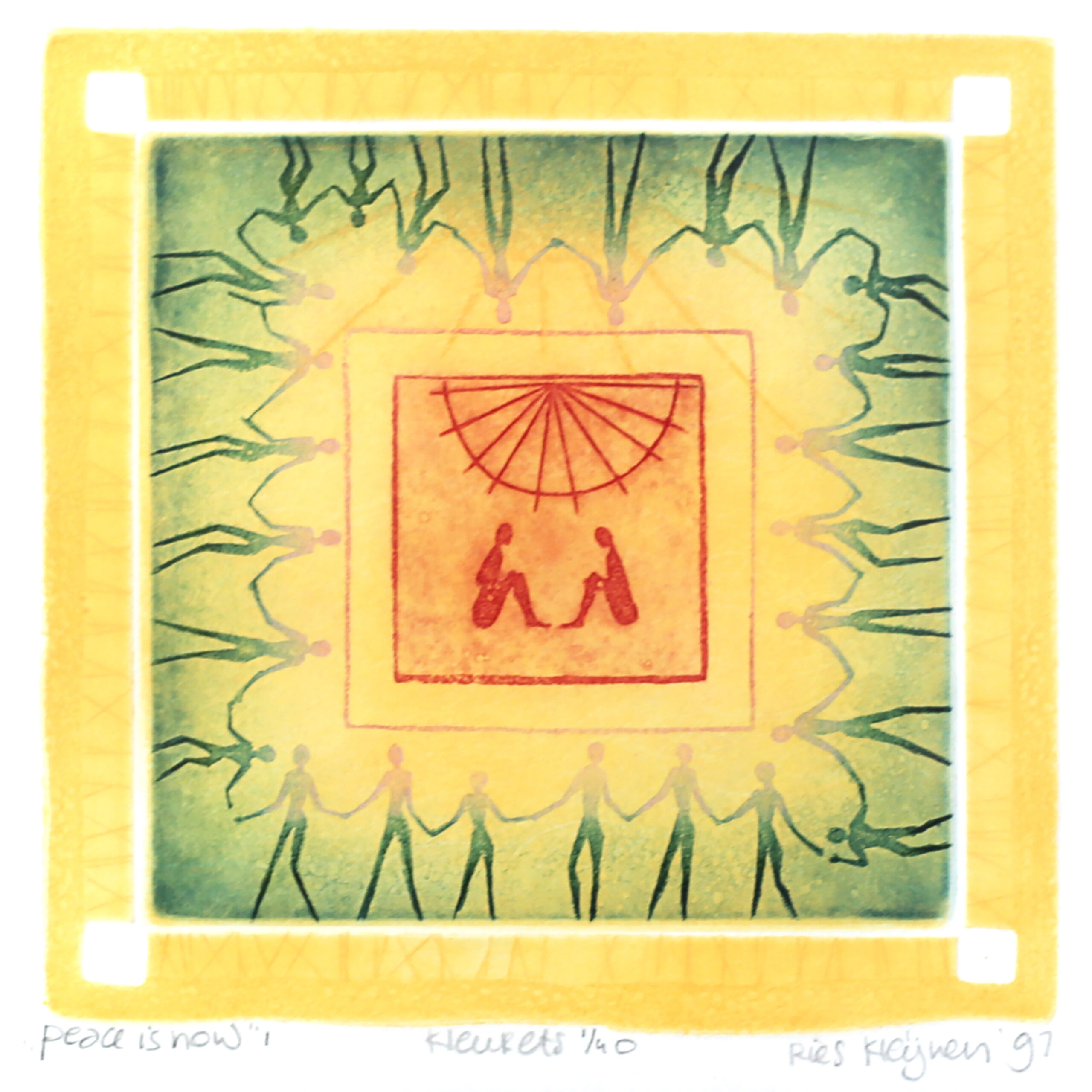 Zeldzame kleurenets van Ries Kleijnen uit 1991, getiteld Peace is Now.