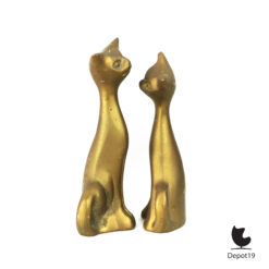 Dit charmante duo kattenbeeldjes uit ca. 1970 is uitgevoerd in messing en vormt samen een harmonisch paar dat bekendstaat als de “liefdeskatten”.