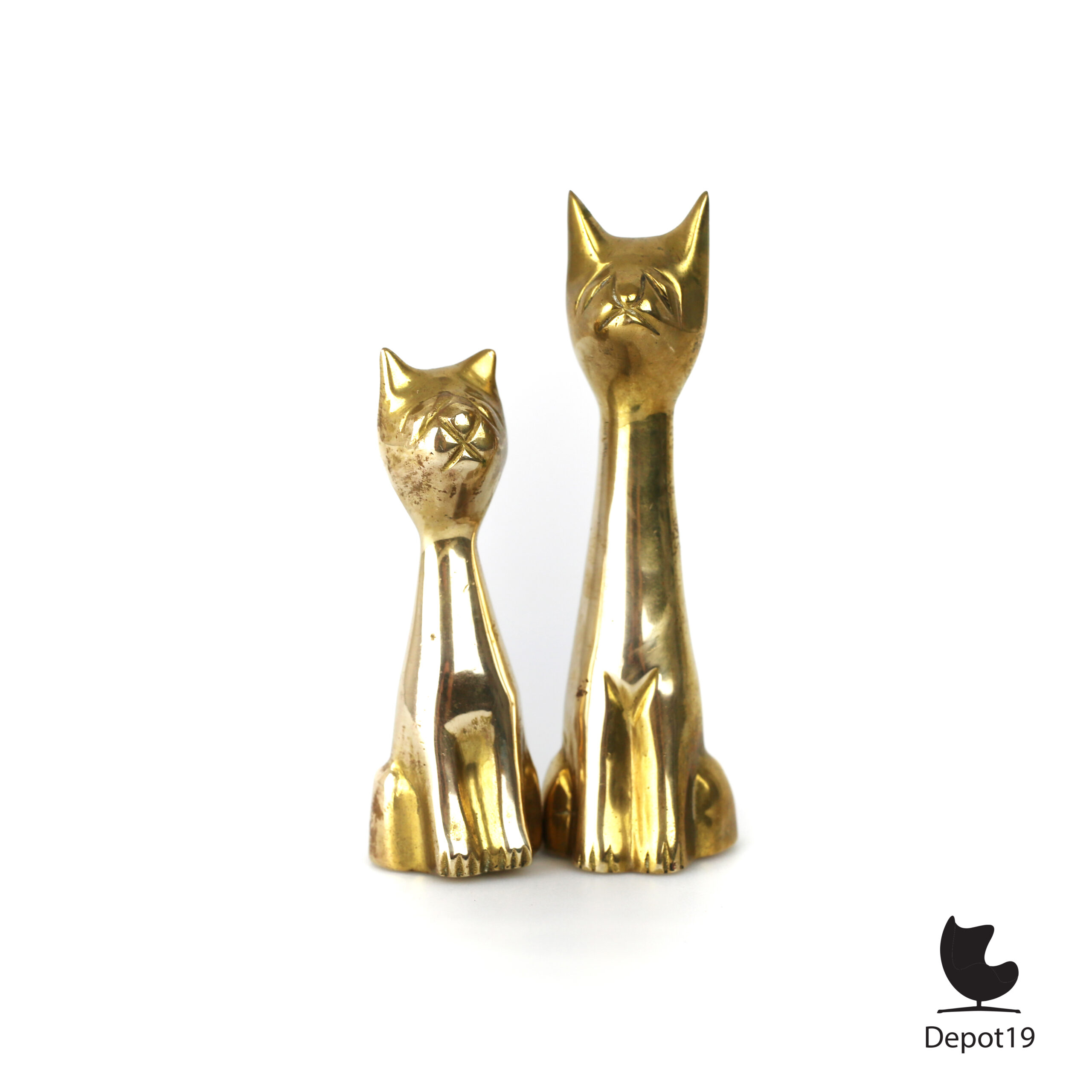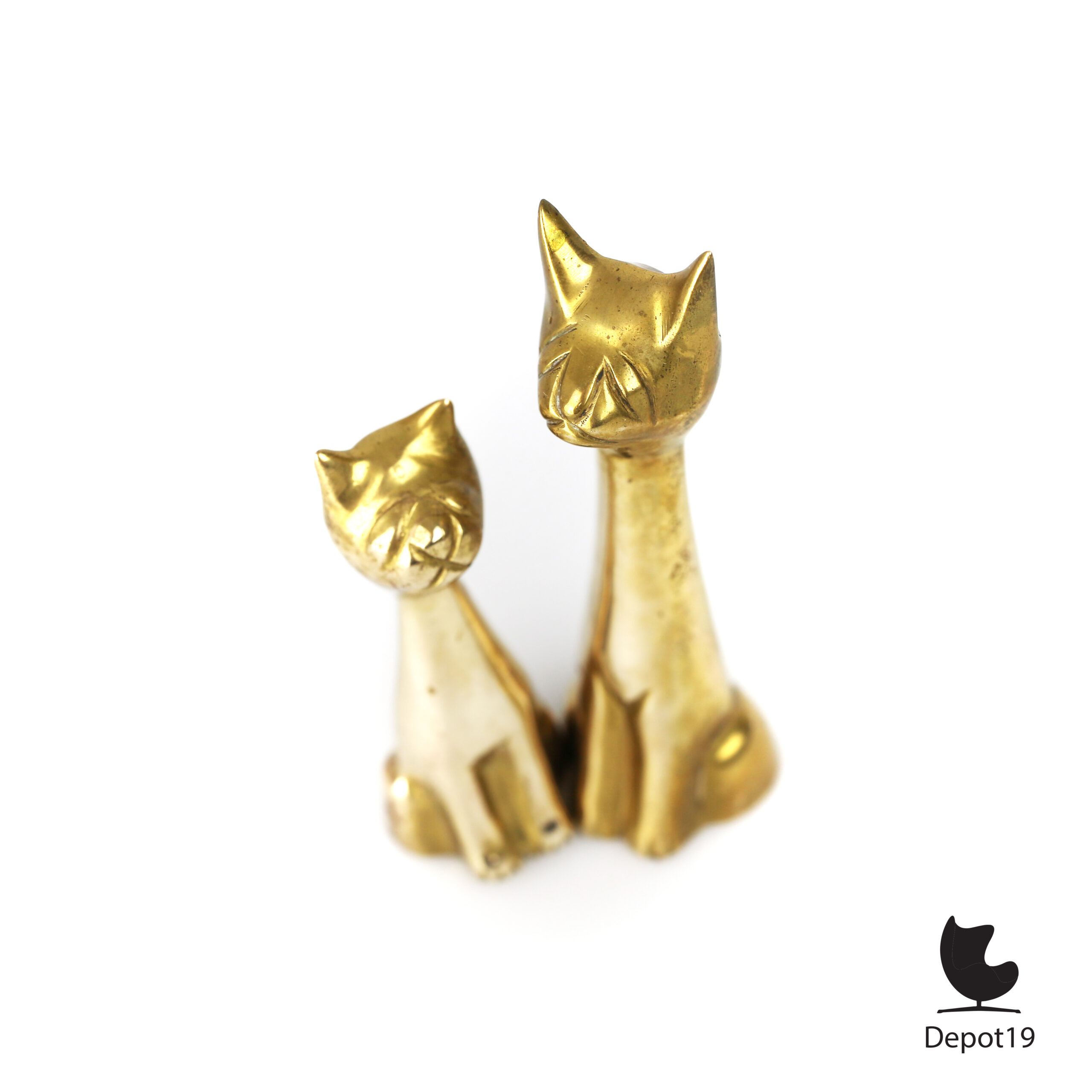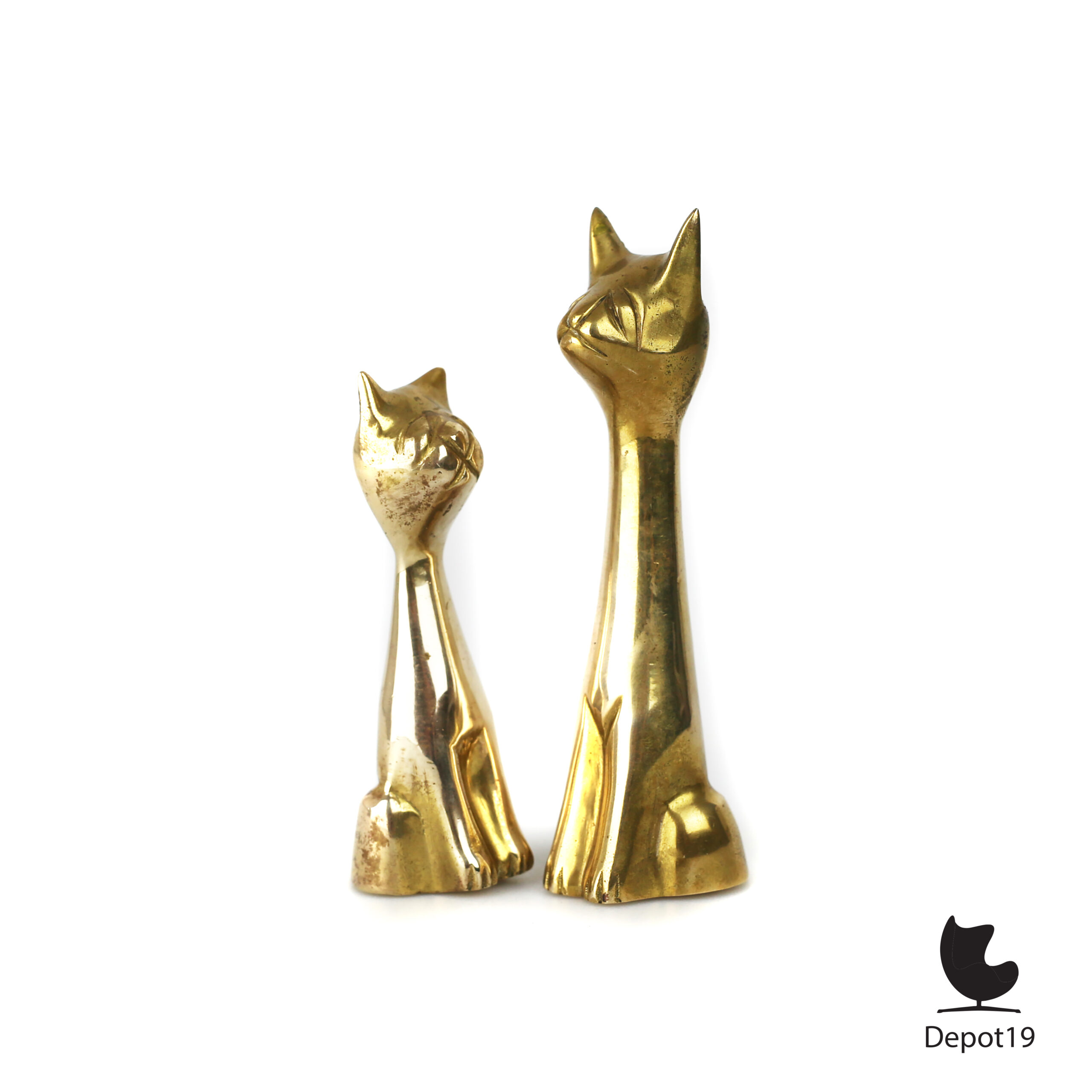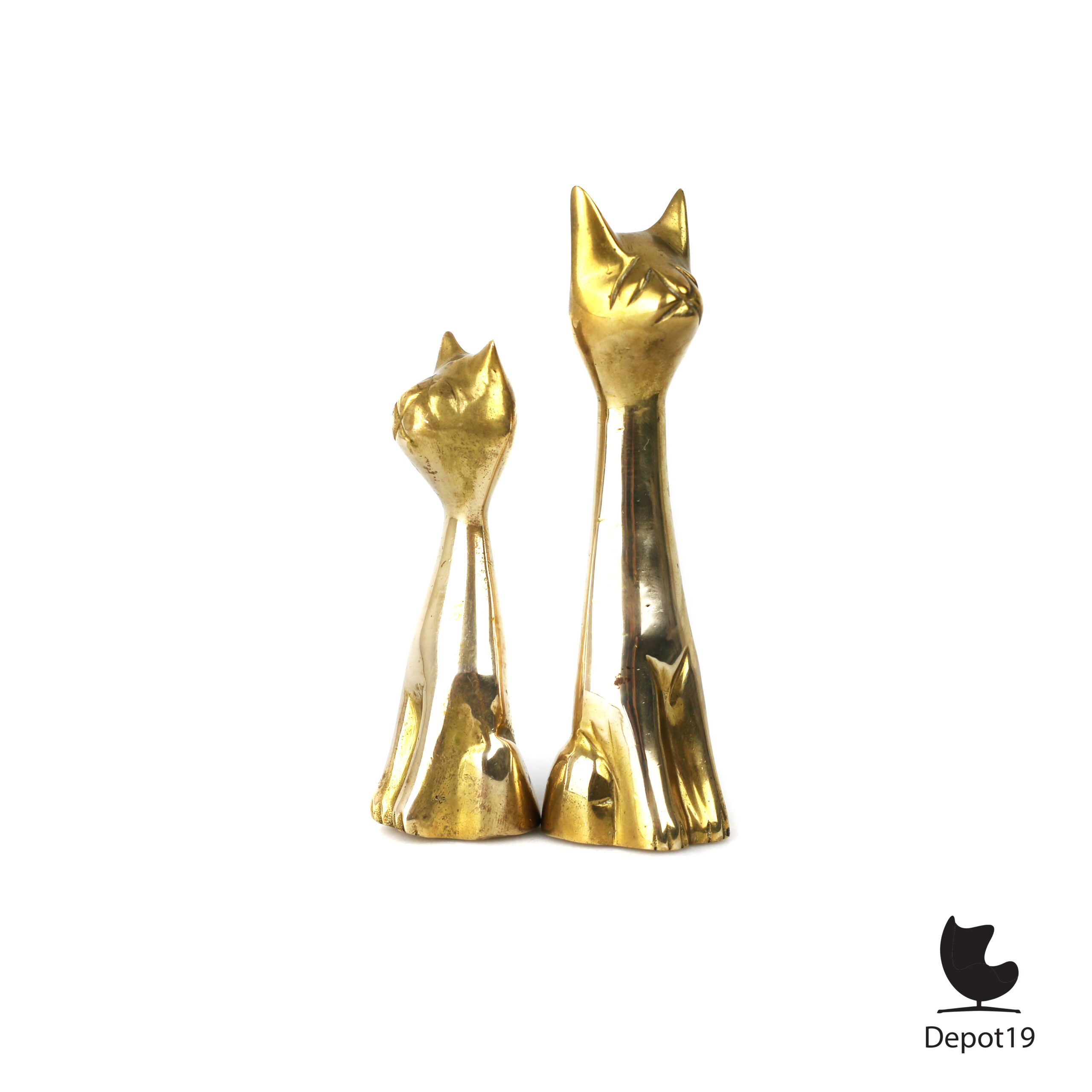 De zachte glans van het messing geeft de katten een warme uitstraling en benadrukt de elegante lijnen van hun ontwerp.