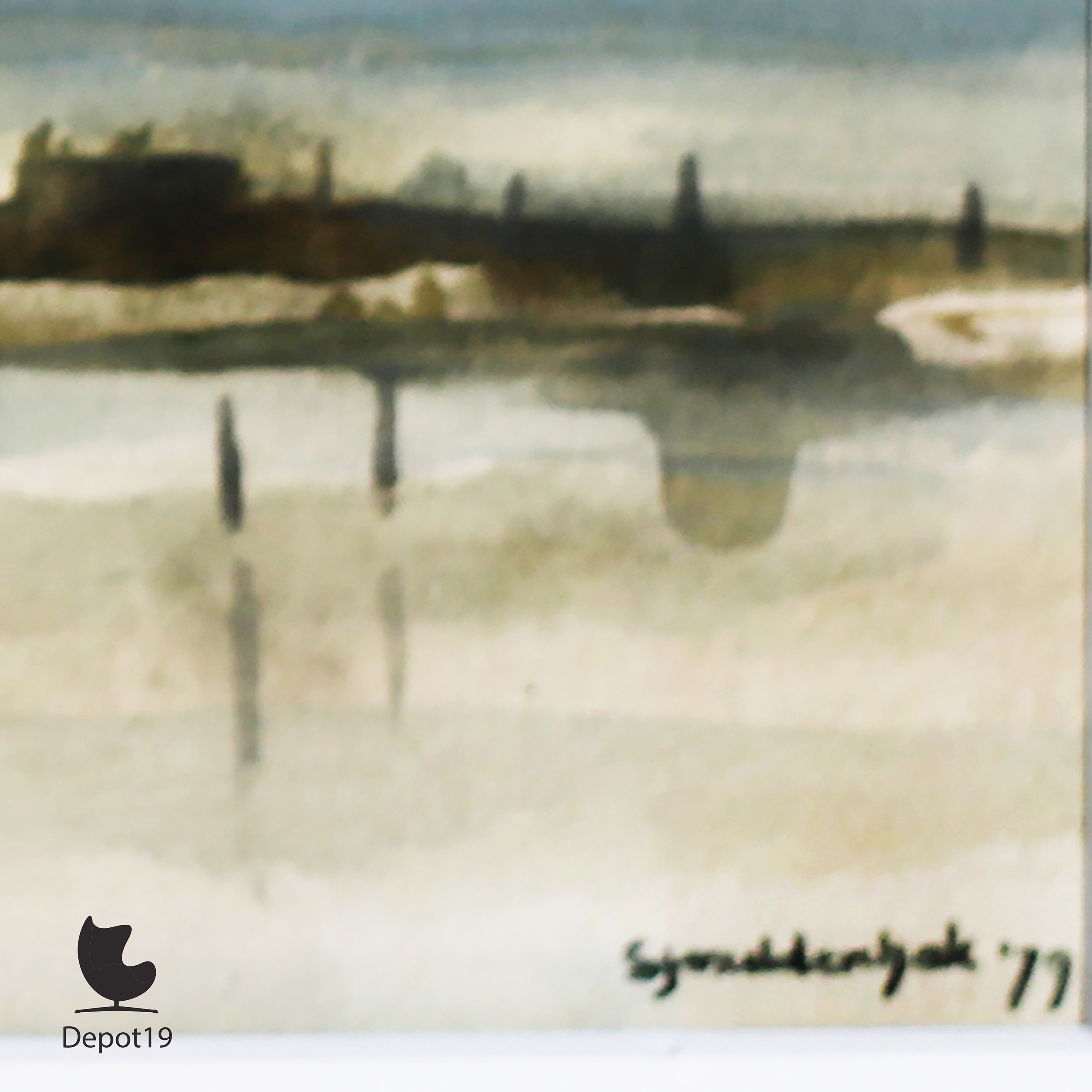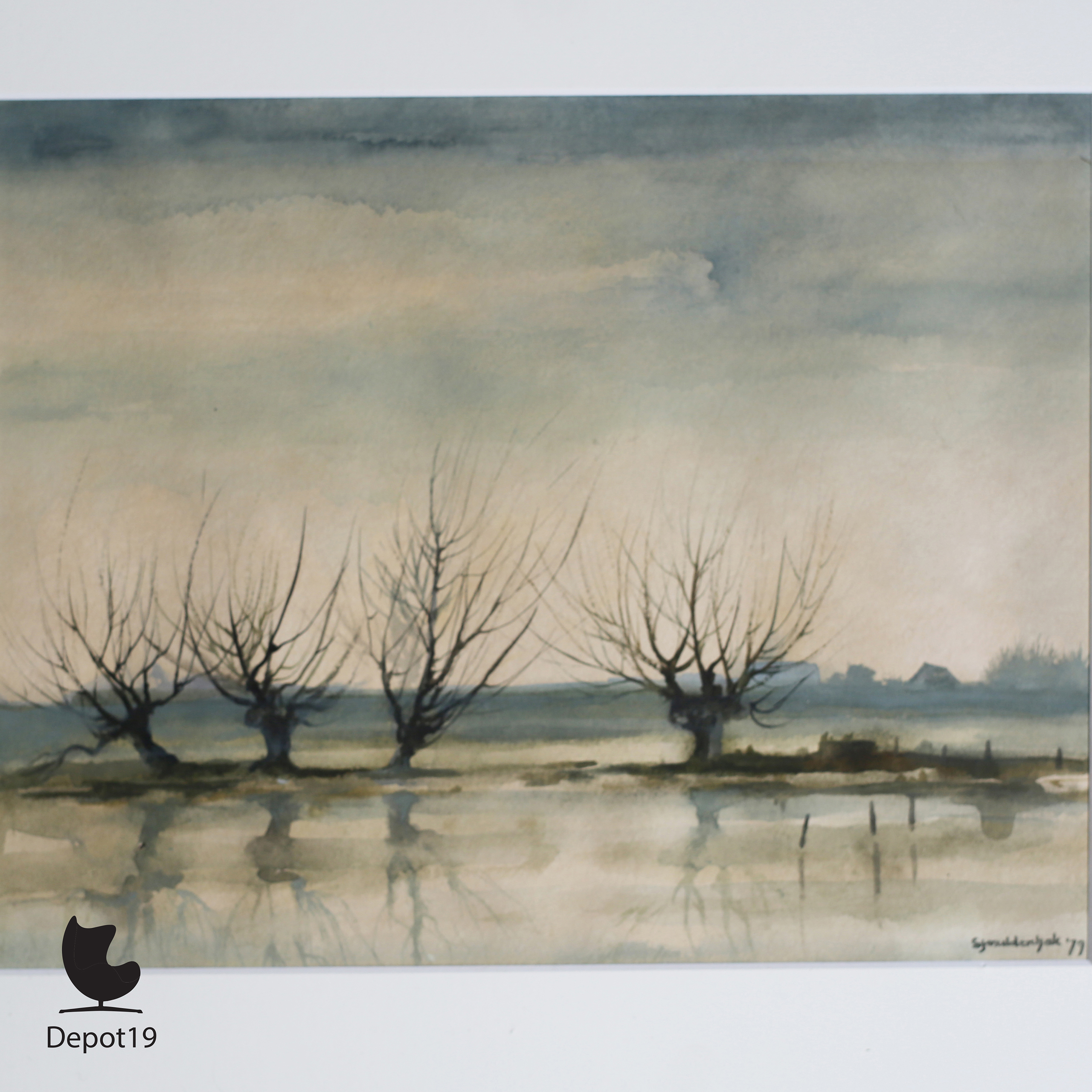 Deze aquarel, gesigneerd rechtsonder, meet 27 × 34 cm (exclusief lijst) en verkeert in uitstekende staat. Een bijzondere aanwinst voor liefhebbers van Nederlands realisme en landschapskunst uit de 20e eeuw — en een hommage aan de verstilde schoonheid van het IJssellandschap.