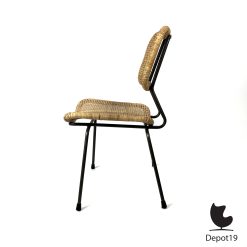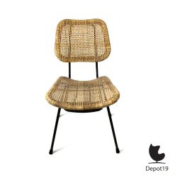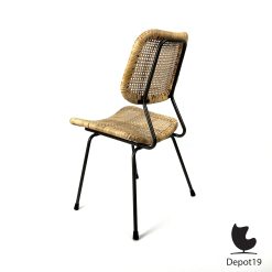 Twee originele Dirk van Sliedregt 550 stoelen uit 1952, geproduceerd door Gebroeders Jonkers Noordwolde. Tijdloze Nederlandse designklassiekers in rotan en staal, toonbeelden van Mid-Century Modern elegantie en functionaliteit.