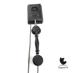 Deze antieke wandtelefoon uit de jaren dertig is een prachtig voorbeeld van de esthetiek en technologie van het interbellum. Het toestel is vervaardigd uit zwart bakeliet, een van de eerste synthetische kunststoffen. Bakeliet werd destijds beschouwd als een materiaal van de toekomst. Dankzij zijn stevigheid, hittebestendigheid en glanzende afwerking werd bakeliet veel gebruikt voor elektrische apparaten, radioโs en telefoons.