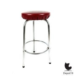 Barkruk Brabantia stijl Vintage rood skai-leer jaren zestig