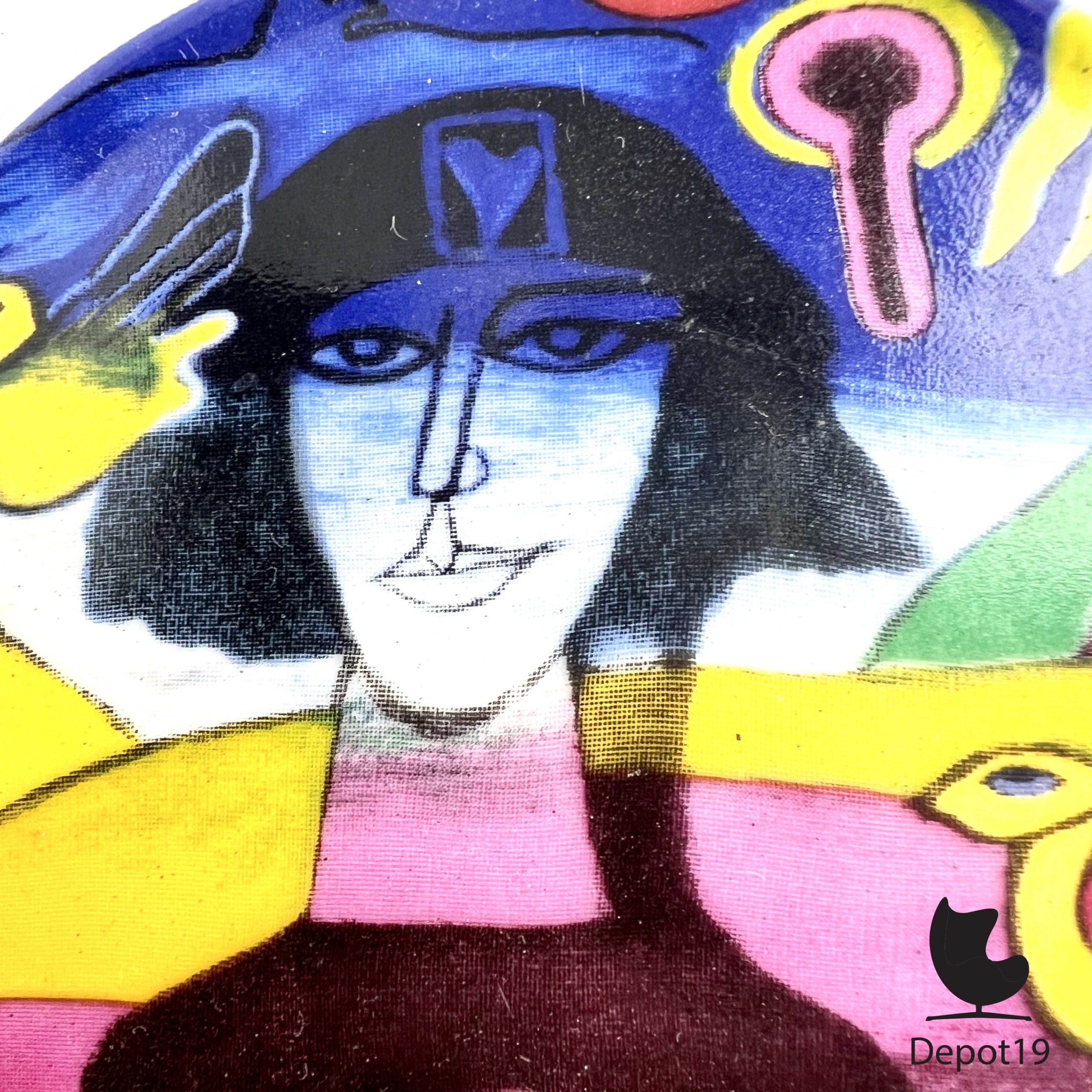 Bovendien benadrukt het keramische oppervlak de levendige penseelkwaliteit die Corneille zo vaak gebruikte. De gesigneerde onderzijde bevestigt vervolgens de authenticiteit en geeft de onderzetter een duidelijke verzamelwaarde voor Cobra-liefhebbers. Daardoor past dit stuk uitstekend in moderne woonaccessoires, vitrines of kunstcollecties.