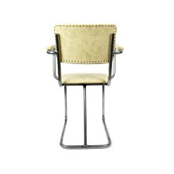 De stoel ademt de functionalistische geest van het interbellum en toont duidelijke invloeden van Bauhaus-pioniers zoals Mart Stam en Christoffel Hoffmann. Toch is dit ontwerp onmiskenbaar Gispen: elegant, technisch vooruitstrevend en comfortabel dankzij de veerkrachtige buisconstructie en ergonomische vorm.