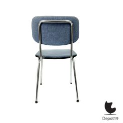 Originele Gispen André Cordemeyer 1231 Cirrus-stoel uit de jaren tachtig met verchroomd frame en blauw-wit gemêleerde ploegstof. Minimalistisch, ergonomisch en volledig in originele staat.
