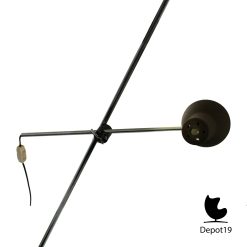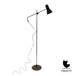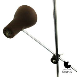 Deze elegante Anvia hengellamp van Jan Hoogervorst uit de jaren zestig toont prachtig hoe functionaliteit en minimalistisch ontwerp samenkomen in รฉรฉn vloerlamp. De chromen buisconstructie zorgt voor een slank en licht silhouet, terwijl de donkerbruine kap een warm en rustig accent aan het ontwerp toevoegt. Daarnaast is de verstelbare arm een typisch Hoogervorst-element, waardoor de lamp eenvoudig kan worden aangepast voor lezen, werken of sfeerverlichting. Dankzij de combinatie van chroom en lak ontstaat een tijdloos, modern geheel dat moeiteloos past in zowel hedendaagse als vintage interieurs. Bovendien staat Anvia bekend om zijn hoge productiekwaliteit, waardoor deze lamp jarenlang meegaat zonder aan uitstraling te verliezen. De rustige belijning en functionele vormtaal maken dit ontwerp tenslotte geliefd bij verzamelaars van Nederlandse mid-century verlichting.