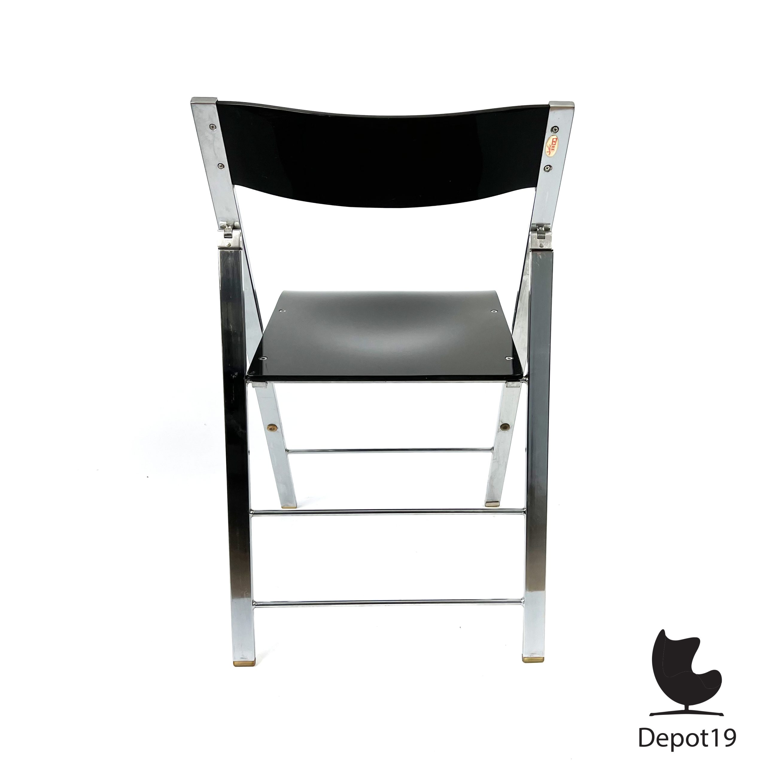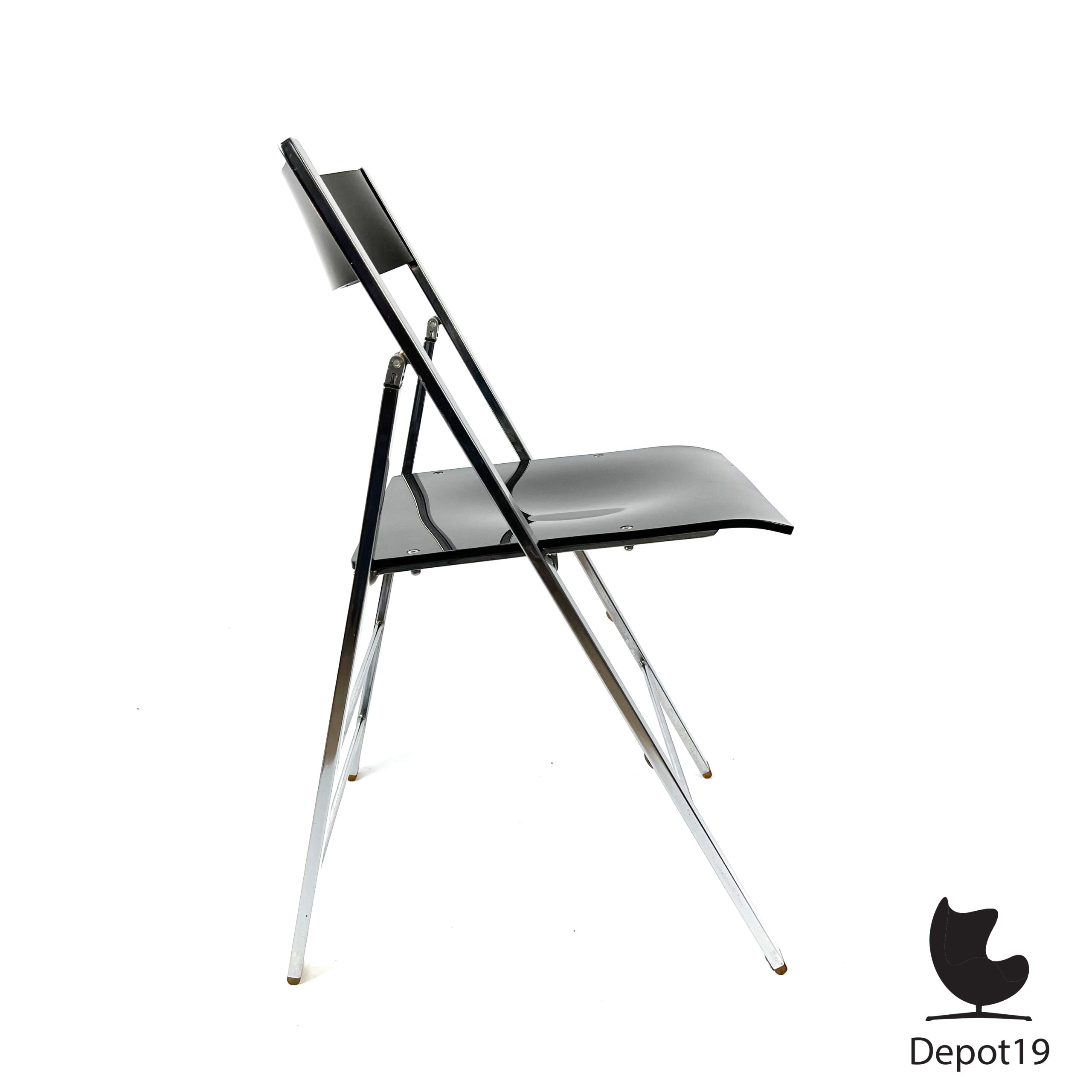 Vintage Kare Design klapstoel uit de jaren ’80, met massief houten frame en polyethyleen zitting — stijlvol, functioneel en zeldzaam.