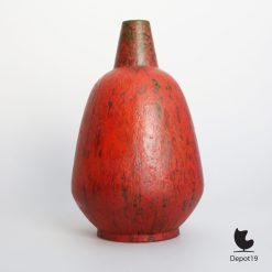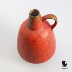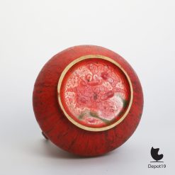De Ruscha 320 vaas toont precies waarom West-Duits Fat Lava keramiek zo geliefd blijft. De expressieve vorm, het diepe Vulkano-decor en de warme kleuraccenten versterken elkaar, waardoor de vaas direct opvalt in elke ruimte. Kurt Tschörner ontwierp het model met een krachtige, organische lijnvoering, terwijl Otto Gerharz het stuk verrijkte met zijn kenmerkende lavaglazuur. Hierdoor ontstaat een levendig reliëf dat doet denken aan gestolde magma.