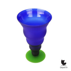 Deze bijzondere post moderne designvaas is vervaardigd uit dikwandig Murano-glas en uitgevoerd in een gedurfde combinatie van diep kobaltblauw met een contrasterende groene voet.