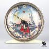 De klok staat stabiel op een schoorsteenmantel of boekenplank, en de originele wijzerplaat geeft nog steeds de tijd aan zodra het uurwerk wordt opgewonden.