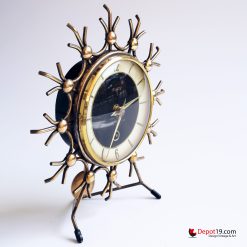 Deze Sunburst klok komt uit dezelfde periode en vertoont alle kenmerken van het tijdvak: scherpe lijnen, geometrische balans en een futuristische uitstraling.