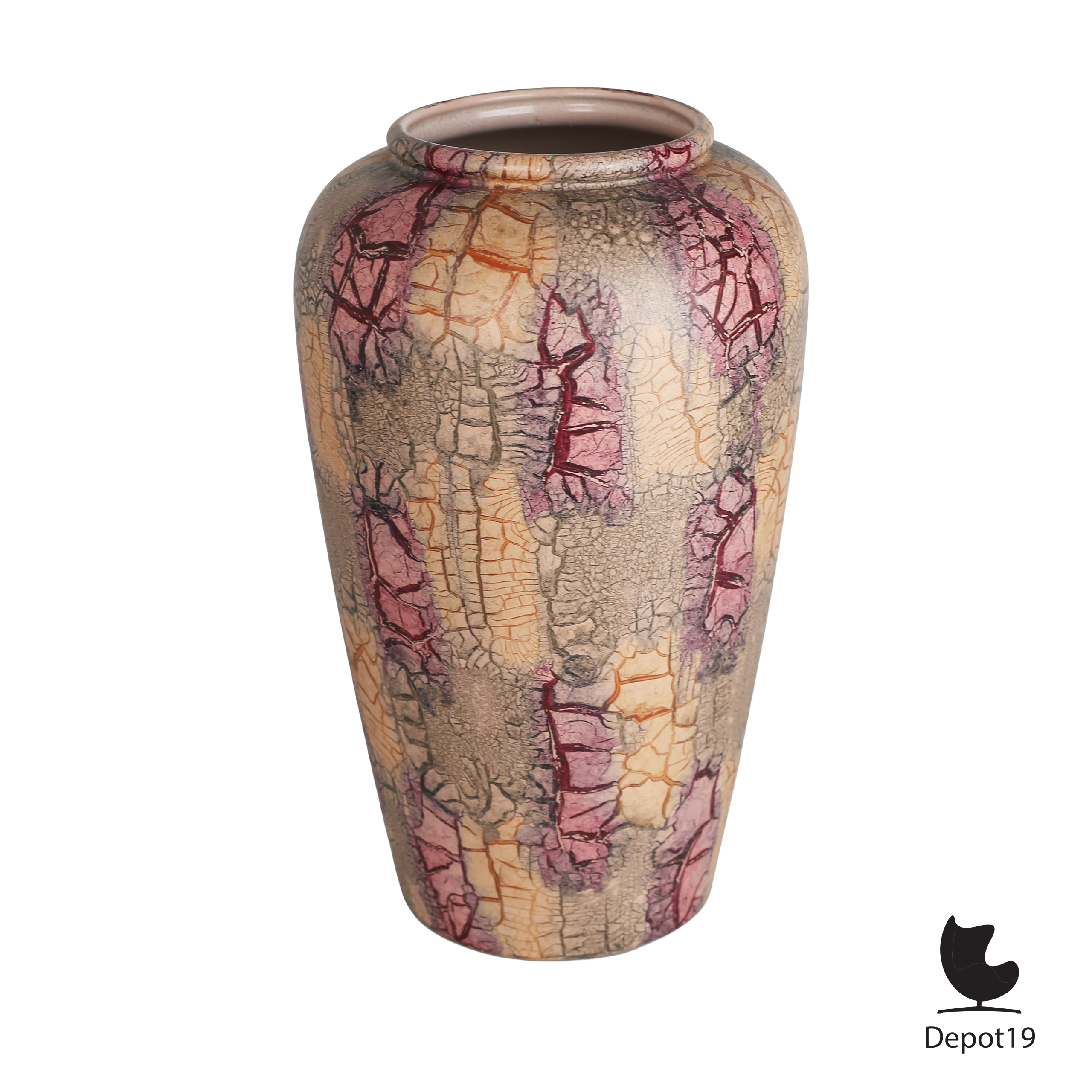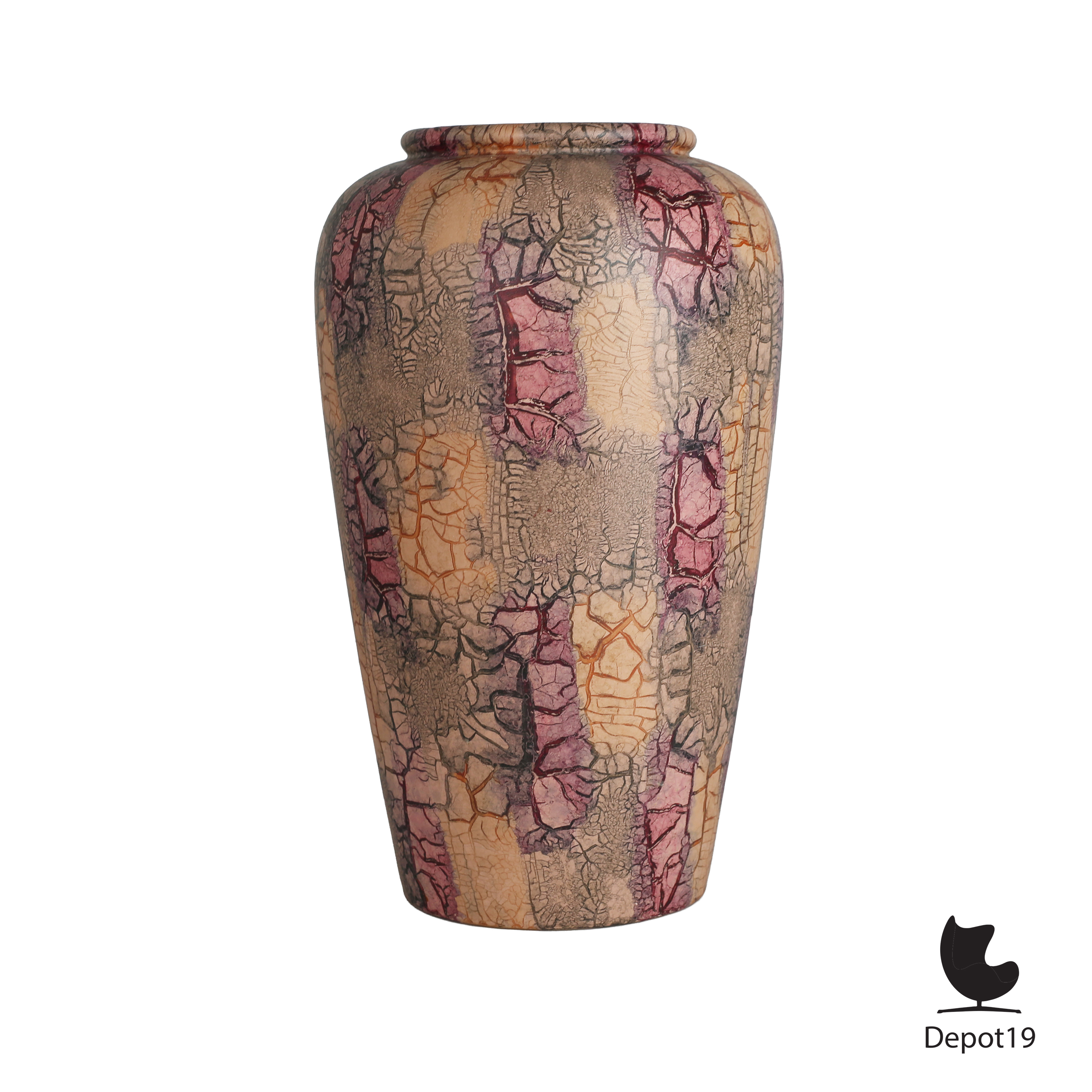 Scheurich 504-38 vaas – groot WGP model 38 cm – craquelé decor in paars, rood en oranje