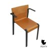 Deze stoel is de kleine versie van stoel 149 van Rohé en heeft net als deze stoel een zwart stalen frame.
