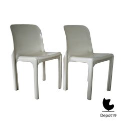 Deze set van twee originele Selene-stoelen verkeerd in goede vintage staat met minimale sporen die passen bij leeftijd en materiaal. Het zijn sterke voorbeelden van Italiaans kunststofdesign dat inmiddels wereldwijd geliefd is bij verzamelaars en interieurarchitecten.
