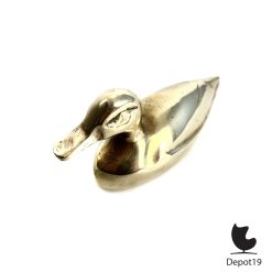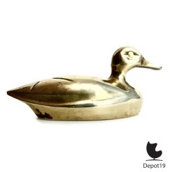 Het gewicht en de massieve uitvoering geven het object een luxe, duurzame uitstraling die typerend is voor decoratief metaalwerk uit deze periode. De eend toont minimale sporen van gebruik passend bij zijn leeftijd, wat juist bijdraagt aan de authentieke vintage charme.
