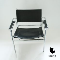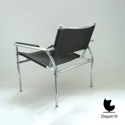 - Materialen: De Leolux 4735 Fauteuil is gemaakt van hoogwaardig zwart tuigleer en een verchroomd stalen frame, wat niet alleen zorgt voor duurzaamheid, maar ook voor een strakke en tijdloze uitstraling.